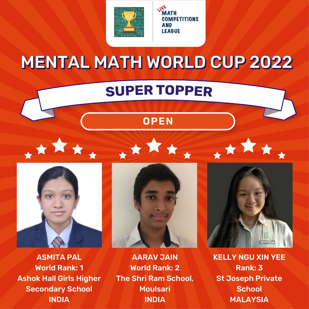 Top Rankers List Mental Math World Cup 2022 :